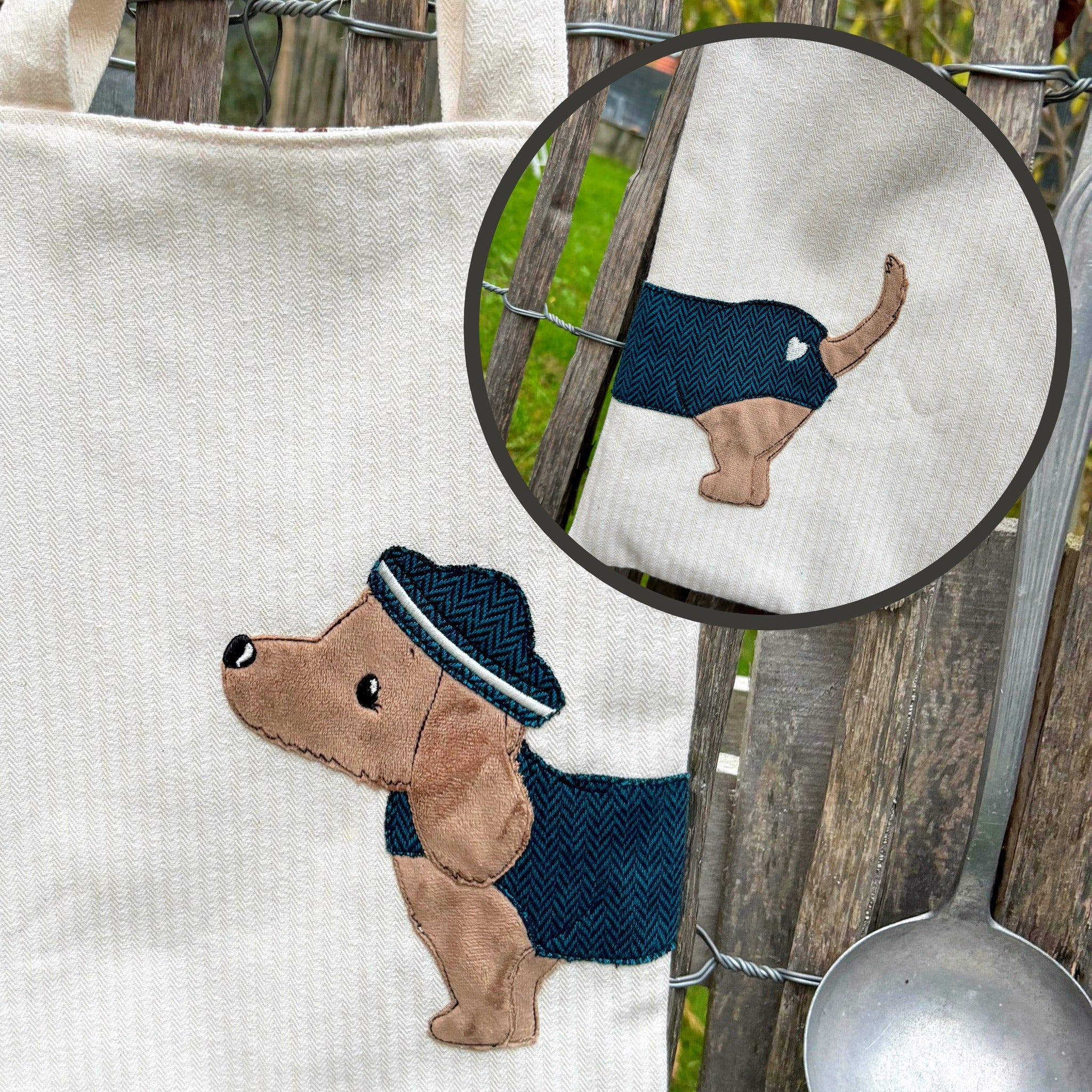 - Dodo Dackel mit und ohne Anzug als Kantentier je Vorder- und Rückteil
